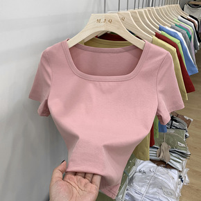 300g高腰装短款上衣女t恤2022夏新款短袖女装...