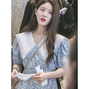 2022女装新款潮夏季娃娃领碎花连衣裙女甜美小清新...