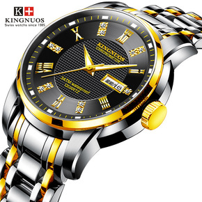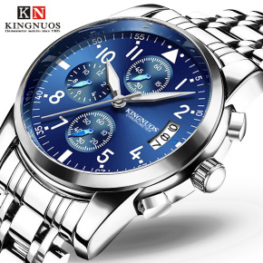 KINGNUOS正品男士双日历防水夜光钢带手表外贸...