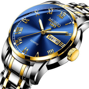 男士手表高档正品 时尚防水石英钢带表六针商务日历外...