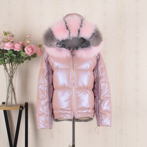 羽绒服女短款加厚2019新款狐狸毛领双面穿网红亮面...