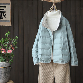 22中国风文艺宽松大码连帽纯色休闲90白鸭绒羽绒服...