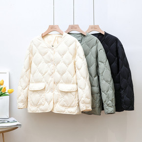 2021年新款轻薄羽绒服女士短款小香风修身显瘦90...
