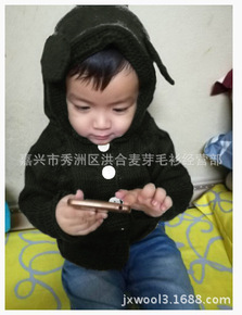 2021秋冬新品欧美绿色连帽单排扣加厚针织儿童毛衣...