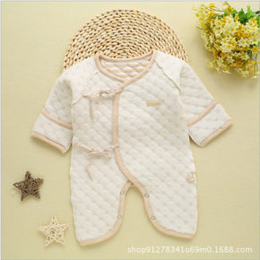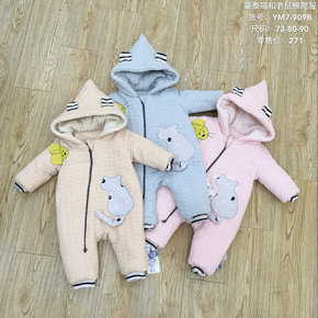 冬季新款可爱新款纯色保暖婴儿连体衣 棉衣爬服宝宝哈...