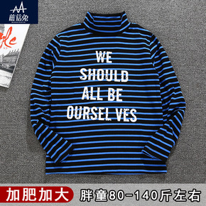 胖童装2017新款男大童打底衫秋冬款加肥加大条纹中...