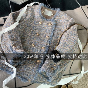 密斯韩 小香风外套女小众设计圆领名媛双排扣气质早春...