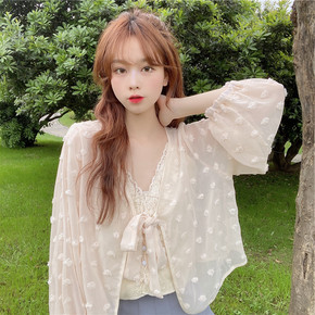 设计感小众设计2022春新款白色单排两粒扣拼接网纱...