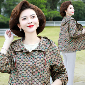 2022新款中老年女装连帽外套休闲妈妈装春装长袖夹...