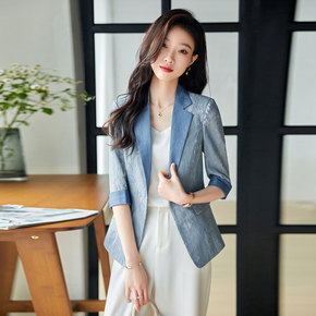 小番茄 雪山融化 渐变牛仔衬衫外套女春秋2022年...