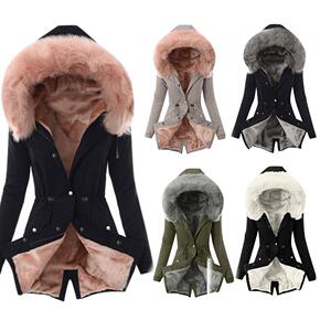 冬装新亚马逊爆款欧美女士棉服毛领纯色休闲保暖中长外...
