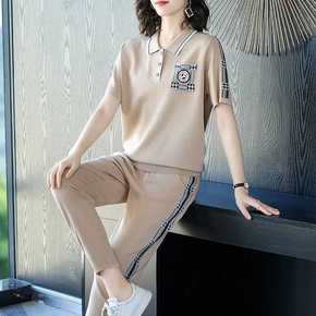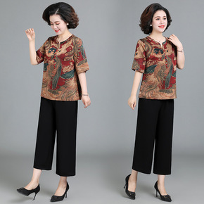 中年妈妈夏装套装洋气2022新款中老年女夏季短袖仿...
