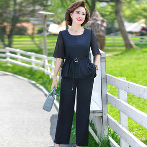 中年妈妈夏装2022新款气质两件套中老年套装半袖上...