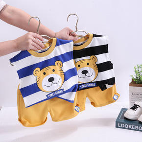 夏季儿童背心套装百搭家居服批发休闲潮牌时尚棉背心男...