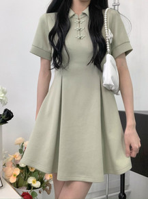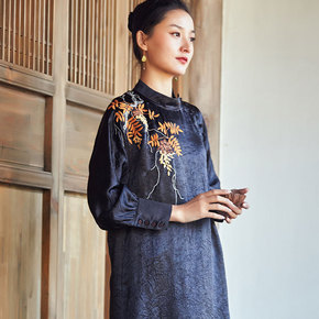 致橡树2021春夏女装新款醋酸绣花新中式复古连衣裙...