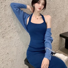 韩国东大门修身显瘦显身材开衫+吊带连衣裙两件套性感...