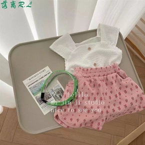韩国童装女童夏季套装儿童女背心韩版洋气女宝宝碎花短...
