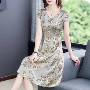 数码印花百搭时尚大码女装连衣裙2022夏季新款休闲...