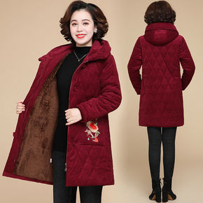 妈妈冬装中老年棉衣女新款加绒羽绒棉服外套女中长款老...