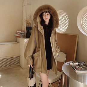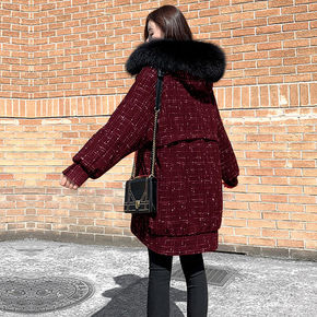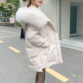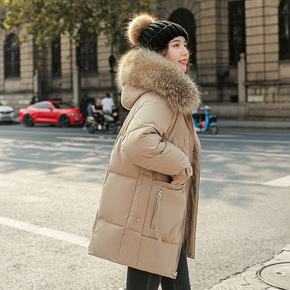 冬装服女中长款2021新款宽松韩版大毛领气质百搭收...
