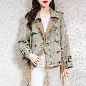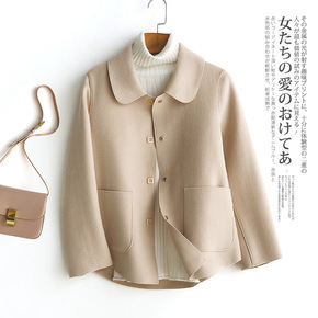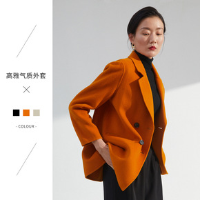 英伦双排扣双面羊绒大衣女2021新款小个子短款宽松...