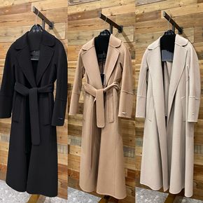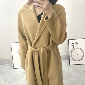 MAX家 秋冬新浴袍款水波纹双面羊毛大衣女系带la...