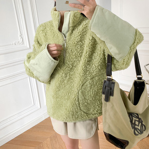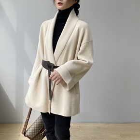 嘉织1-A81 韩版宽松毛呢外套浴袍款 气质通勤简...