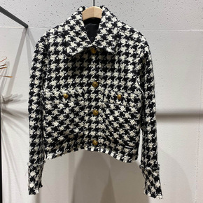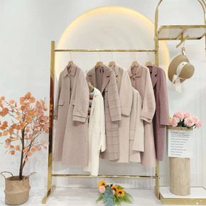 2021秋冬新款 亮丝双排扣 倒三角拼接 手工双面...