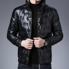 新款潮流亮面棉衣男中长款韩版加厚修身羽绒棉服冬装棉...