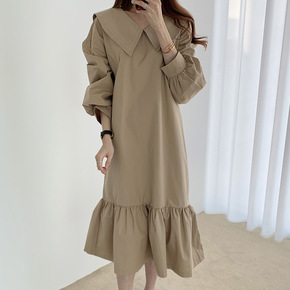 韩国chic秋季小众复古明线海军领宽松遮肉显瘦长款...