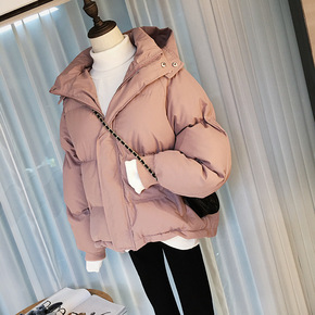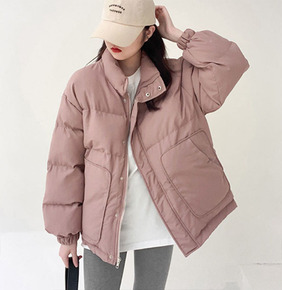 糖果色立领粉色宽松棉衣棉服棉袄短外套女2021秋冬...