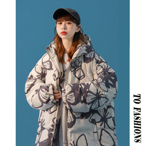冬季新款男士蝴蝶印花棉服棉衣外套情侣装港风连帽短棉...