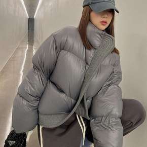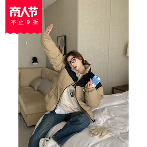 黄峥立领撞色棉服女2021冬季韩版宽松休闲加厚棉衣...