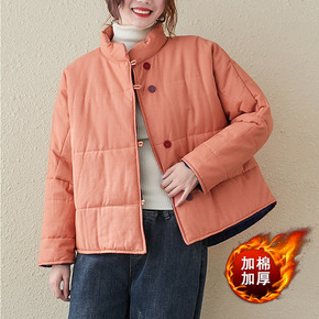 2022新款棉麻短款棉服民族风夹棉加厚上衣宽松显瘦...