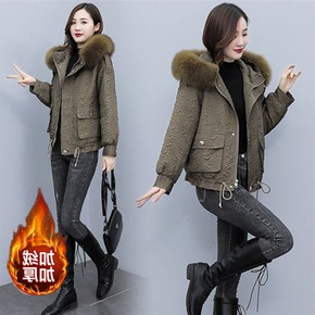 冬季加绒加厚短款棉衣女2021秋冬新款工装时尚宽松...