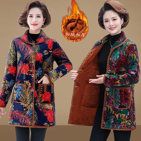 中老年女棉衣妈妈冬装外套民族风中长款棉服加绒加厚老...
