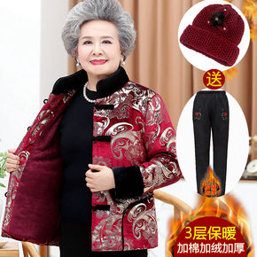 中老年棉袄女妈妈冬装外套奶奶棉衣加绒加厚到岁人老太...