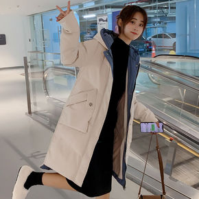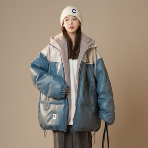翻领工装棉服女冬装新款港风宽松中长款加绒加厚服外套...
