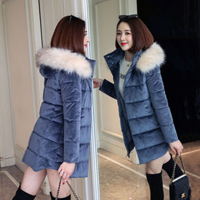 新款韩版棉衣女中长款修身大毛领过膝长款棉服加厚大码...