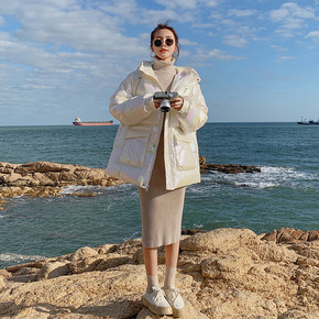 大毛领羽绒棉服女2021年新款长款冬季过膝时尚加厚...