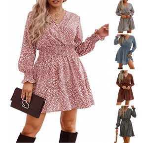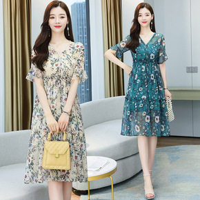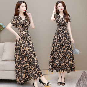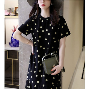 波点连衣裙女2022夏装新款女装短袖圆领气质宽松显...