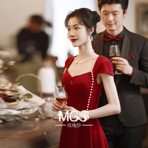 红色敬酒服新娘2021新款小个子回门订婚礼服连衣裙...