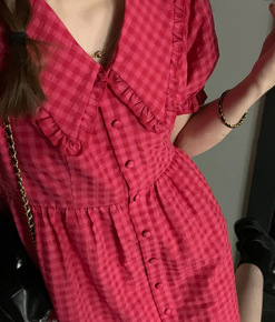 气质爆表!茶歇法式连衣裙夏荷叶边排扣设计感短裙收腰...