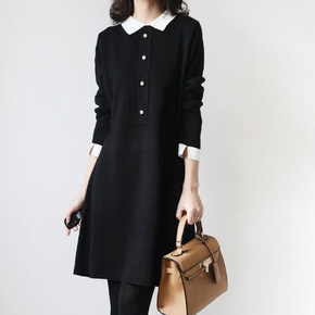 2021秋冬针织新款日系轻熟风长袖针织翻领假开衫轻...