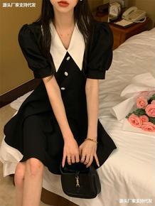 哈齿小姐22春季新款赫本风小蛮腰气质连衣裙子女收腰...