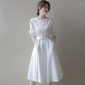白色衬衫连衣裙夏季2022新款小个子法式赫本风温柔...