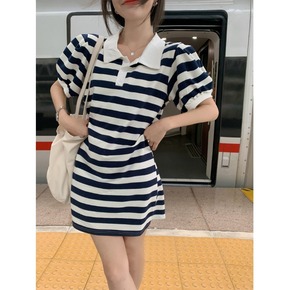 polo领连衣裙女2022年夏季新款韩版宽松小个子...