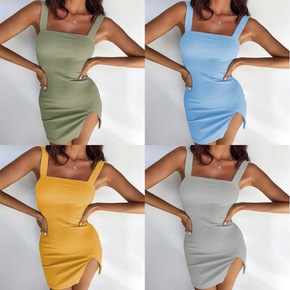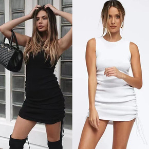 2022欧美新款外贸女装性感修身包臀裙两边抽绳背心...