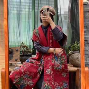 原创国风禅意提花加厚长棉衣 新中式优雅暗纹提花加长...