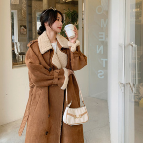 实拍新款羊羔毛外套女秋冬季皮毛一体长款加绒加厚麂皮...